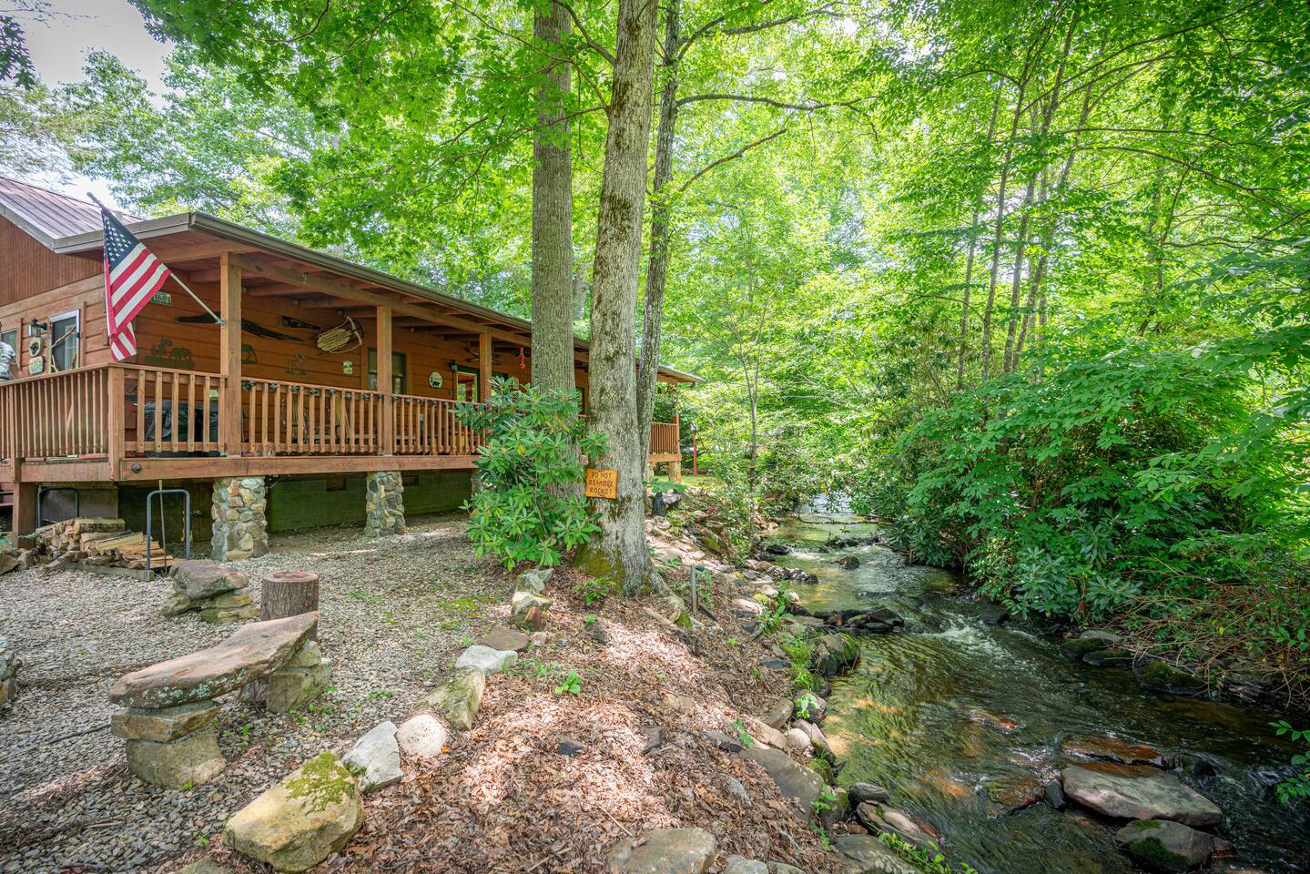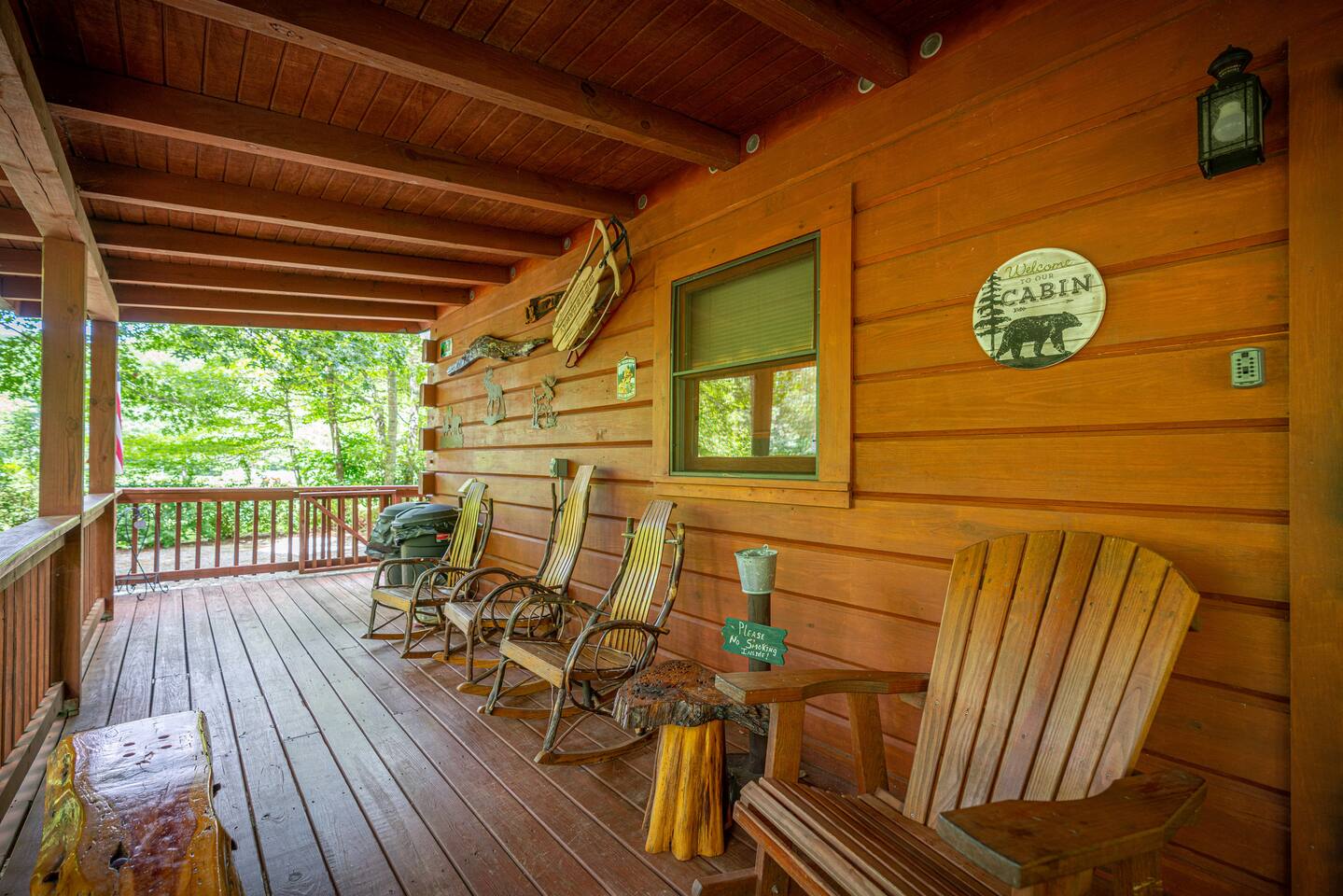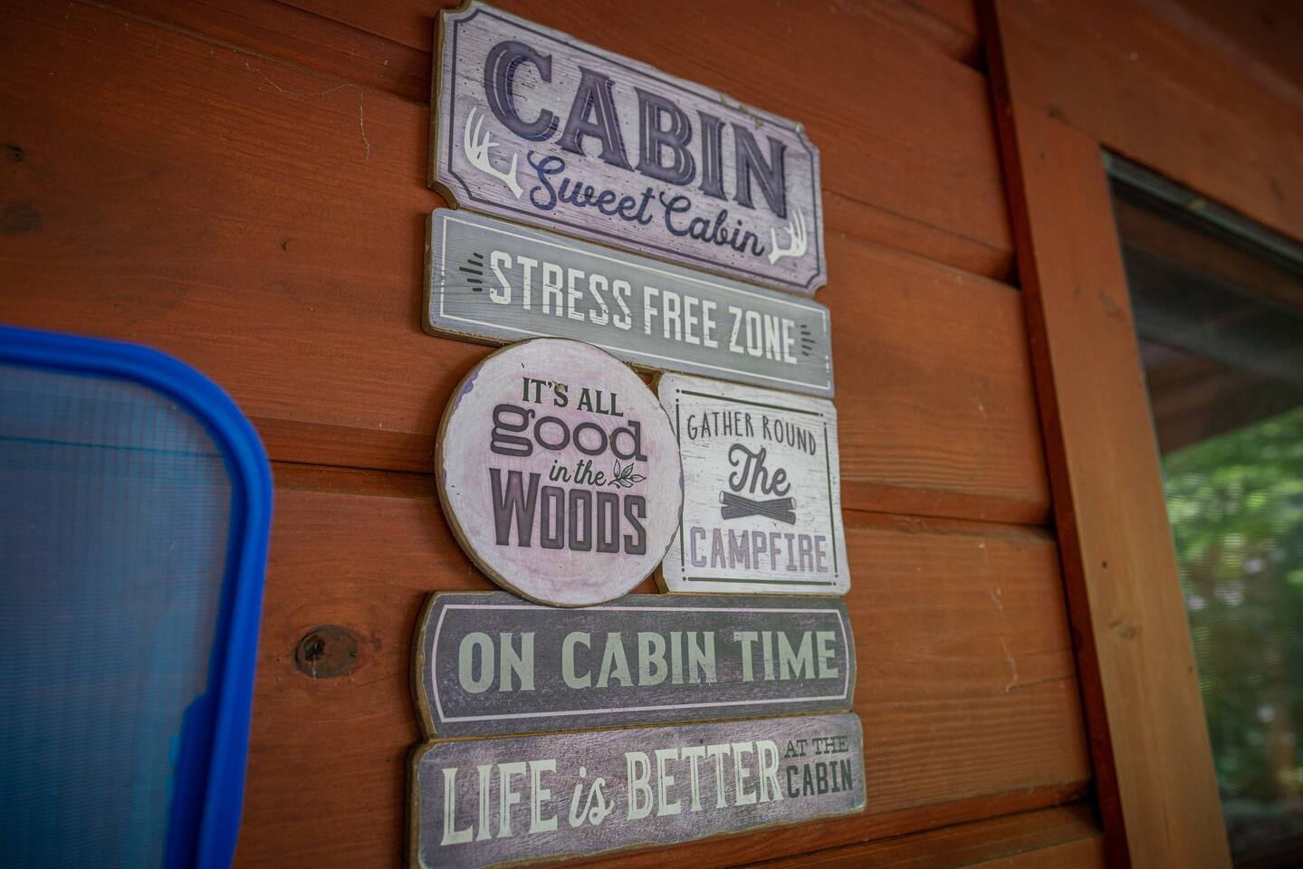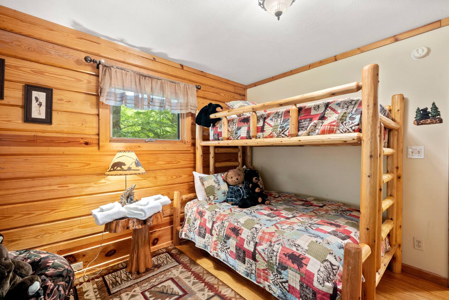 You'll love the details of this rustic, yet modern cabin. The deck overlooking the creek is a great spot to relax at night!! In the primary bedroom suite, we have a Queen size bed, the second bedroom has a Queen bed, and the third has a Full/Twin bunk bed.