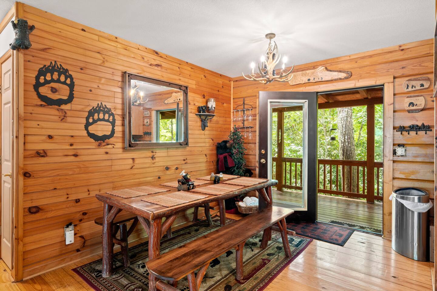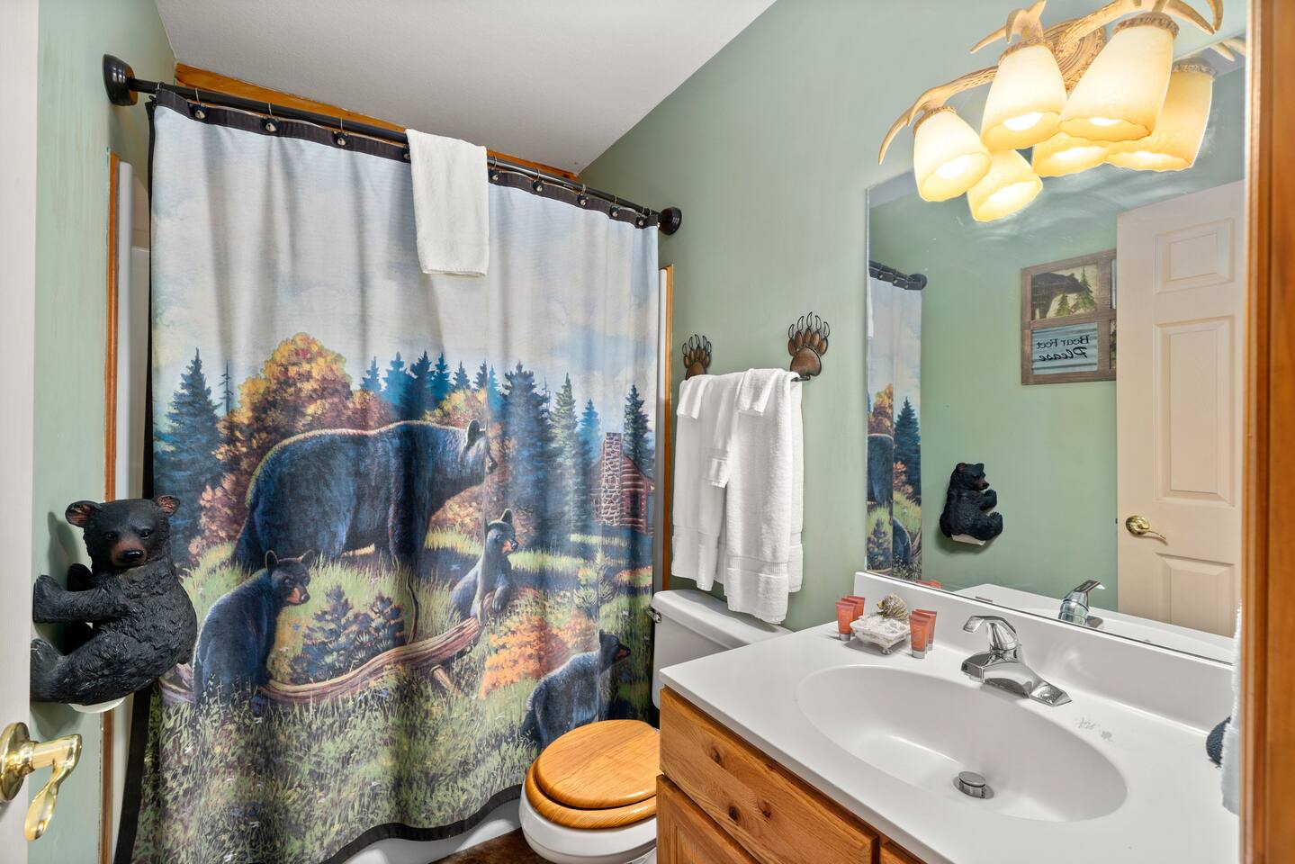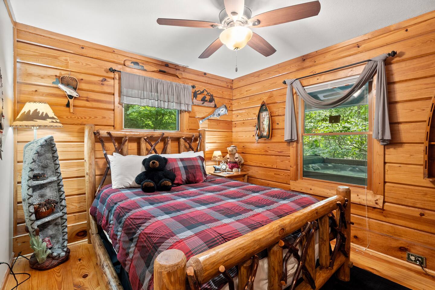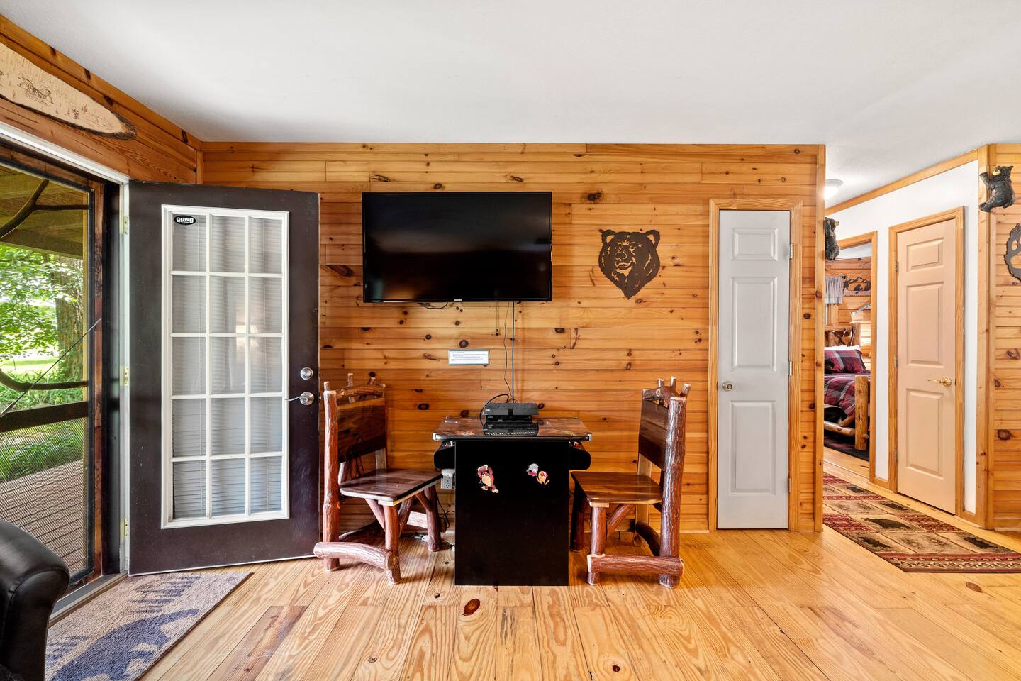 You'll love the details of this rustic, yet modern cabin. The deck overlooking the creek is a great spot to relax at night!! In the primary bedroom suite, we have a Queen size bed, the second bedroom has a Queen bed, and the third has a Full/Twin bunk bed.