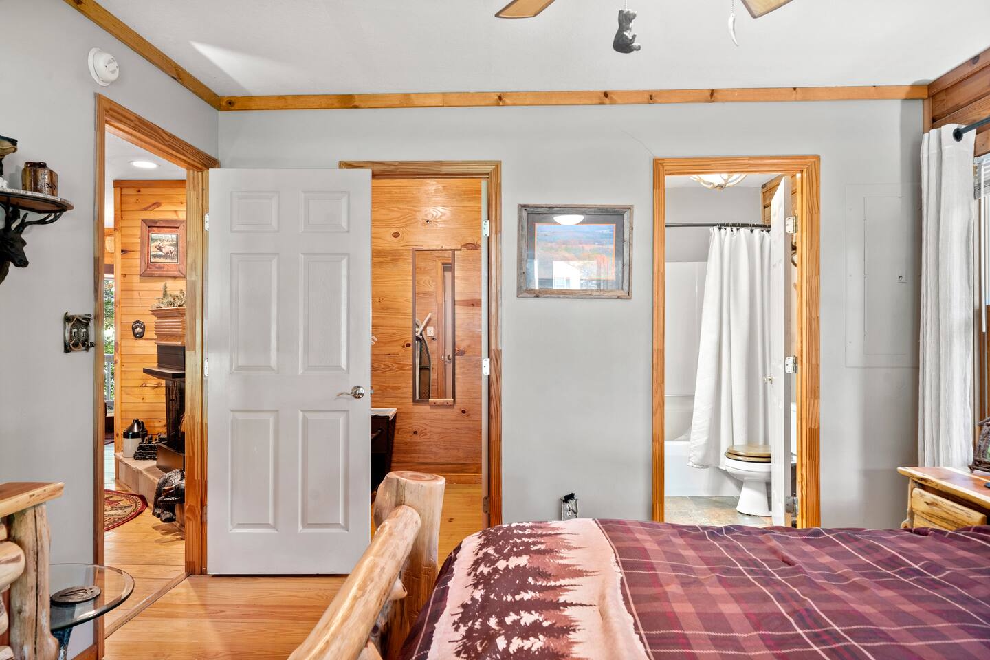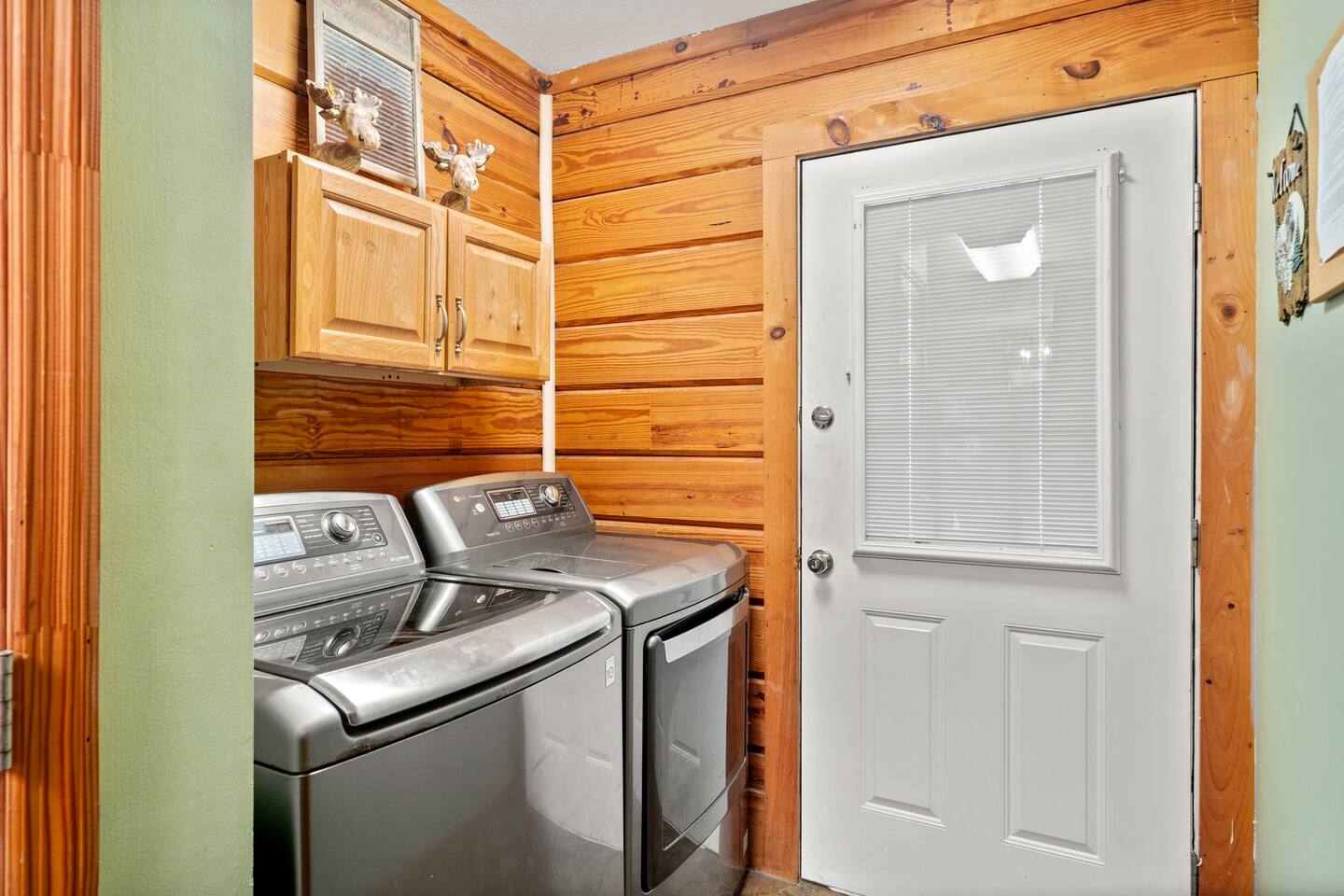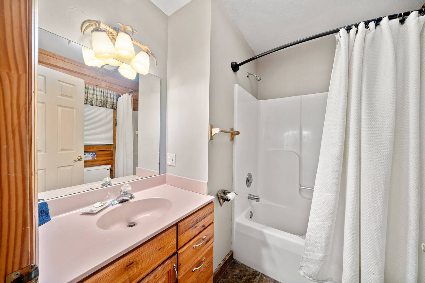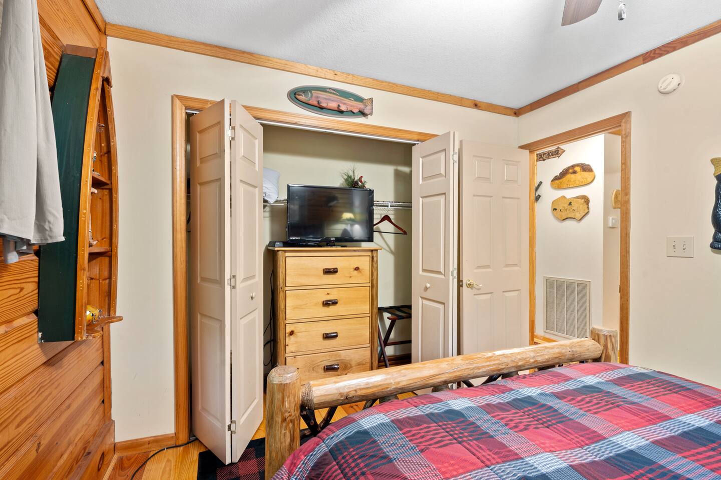 You'll love the details of this rustic, yet modern cabin. The deck overlooking the creek is a great spot to relax at night!! In the primary bedroom suite, we have a Queen size bed, the second bedroom has a Queen bed, and the third has a Full/Twin bunk bed.