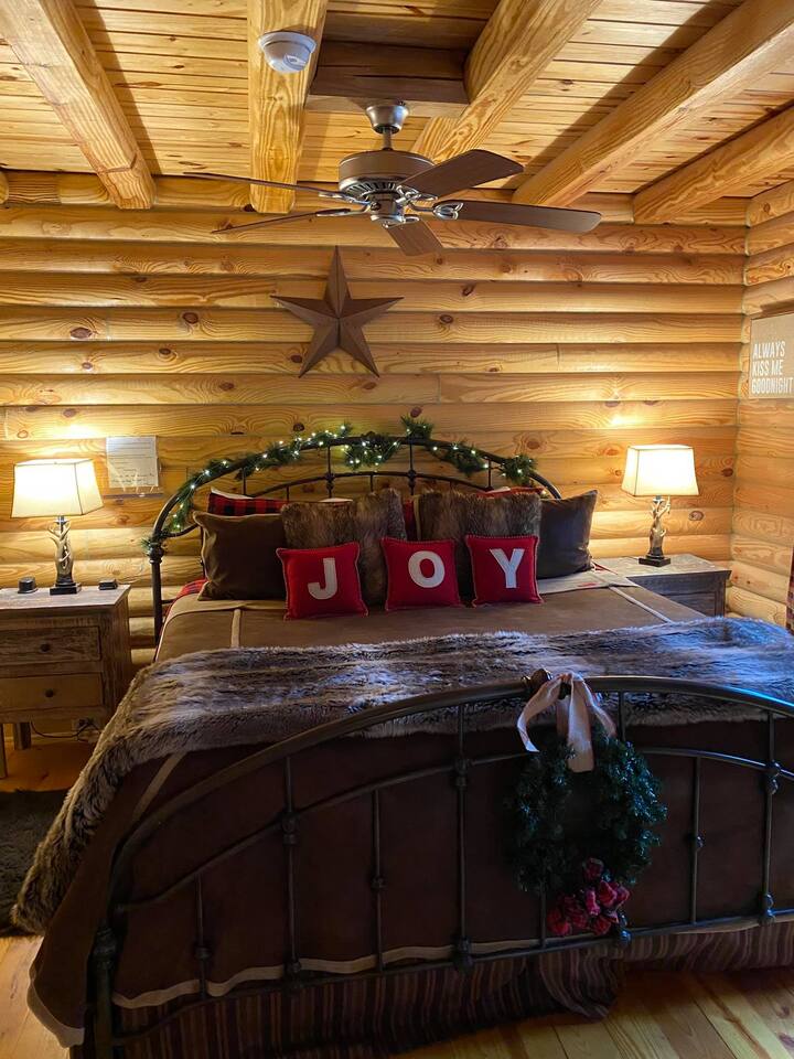 The main floor hosts the vaulted-ceiling living room, kitchen/dining, and King bedroom. Upstairs is another two bedrooms, both with Queen beds. And downstairs has another two twin beds and pool table!